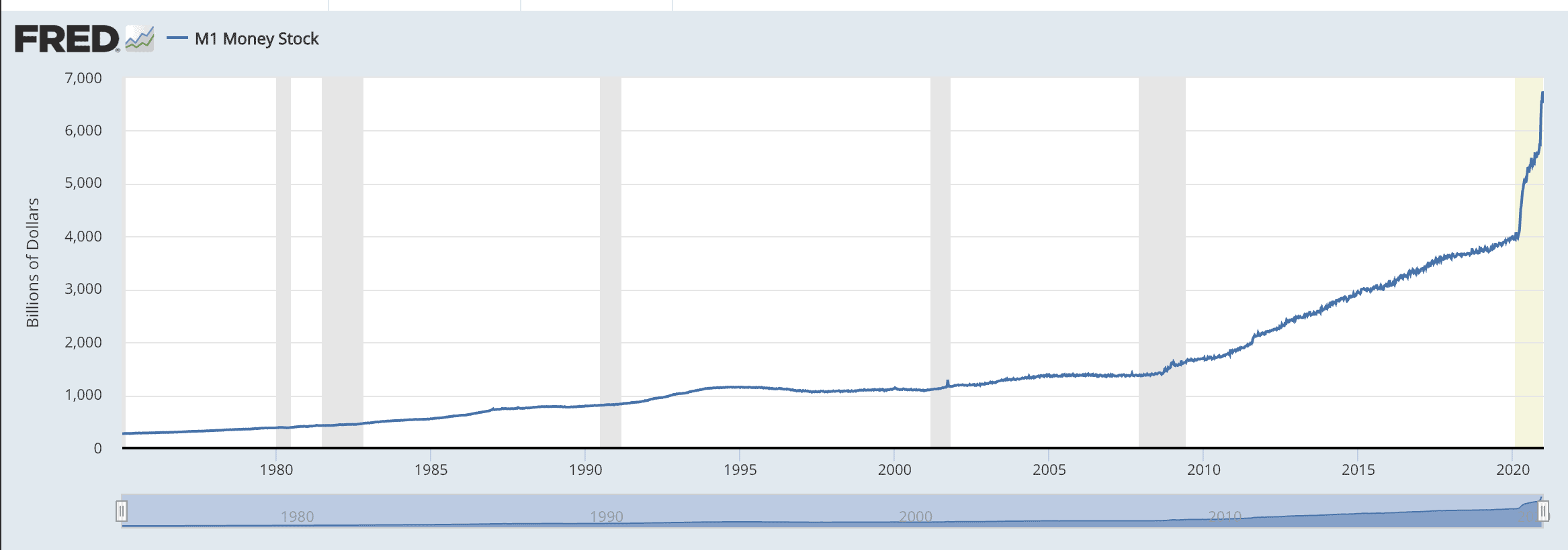According to a graph from the Federal Reserve Bank, 35% of all U.S. dollars in existence have been printed in the past 10 months.