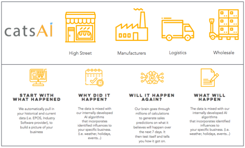 Our existing clients and partners make up a wide variety of retail firms from the smallest high-street store such as bakeries, through to large global wholesaler enterprises. The core challenge is that every client, every location, and every product is different. Therefore, being able to adapt to a wide variety of products and clients has proven key to catsAi’s burgeoning success.