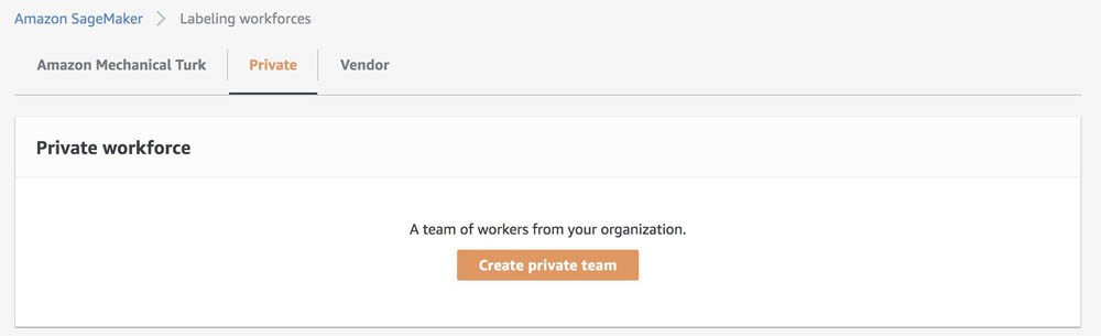 - Navigate to the Labeling workforces page on the Amazon SageMaker console.