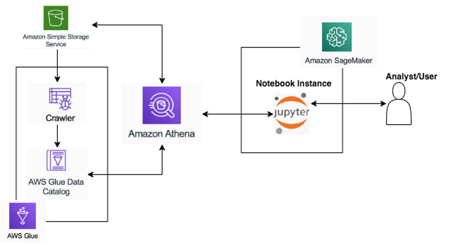 - Create an Amazon SageMaker Jupyter notebook and install PyAthena.