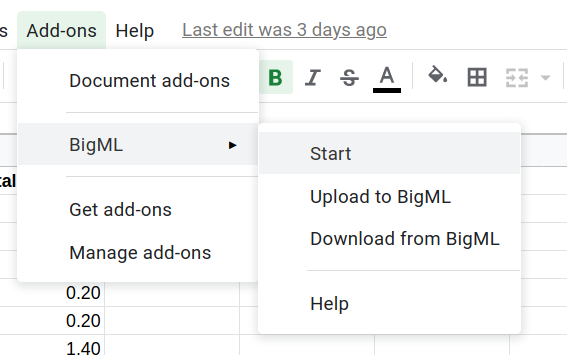 We’re happy to share that this last version of BigML’s add-on has overcome these limits to provide more flexibility and options to users. This video shows a quick taste of the add-on functions that will be explained in this post.