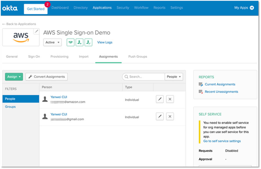 For instructions, see Single Sign-On between Okta Universal Directory and AWS.
