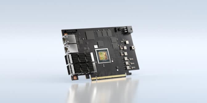 You can get those capabilities now, Huang announced, with the new BlueField-2X. It adds an NVIDIA Ampere architecture GPU to BlueField-2 for in-networking computing with CUDA and NVIDIA AI.