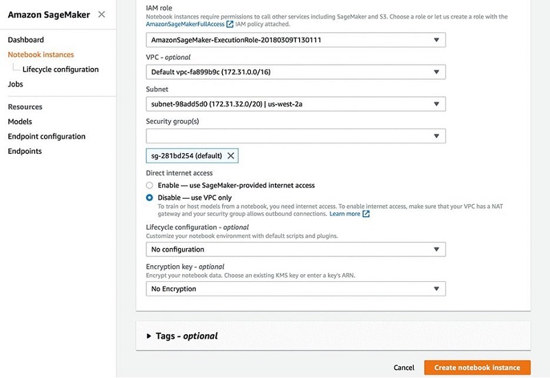 8. Choose Create notebook instance.