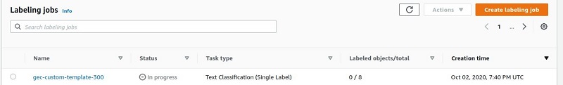 - On the SageMaker console, under Ground Truth, choose Labeling jobs.