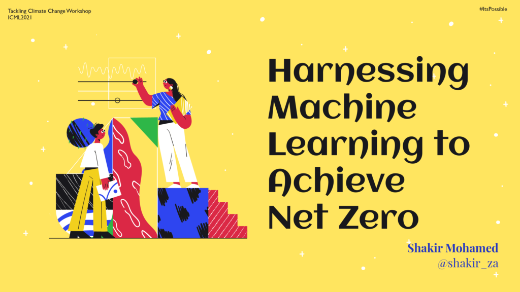 Hello everyone and thank you for being here today. This has become one of those must attend workshops over the years and I’m so excited to be part of the workshop today. To briefly introduce myself, my name is Shakir Mohamed and I use the pronouns he/they. I am a scientist and an engineer and I focus my efforts on machine learning to address global challenges, and also on developing the resources and thinking we need and that takes seriously the social and technical nature of our work. I’m extremely grateful to all the workshop organisers for thinking of me and for this invitation. It is committed action like theirs and of all the contributors to this workshop that is so essential to our future prosperity.