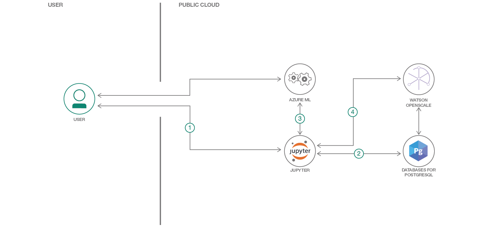 2. The Jupyter Notebook is connected to a PostgreSQL database that stores the Watson OpenScale data.