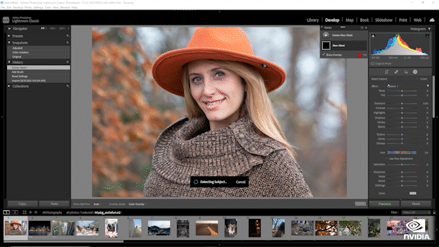 New features in Adobe Lightroom and Lightroom Classic bring powerful AI into the hands of more creators. Select Subject, which isolates people, and Select Sky, to capture skylines, are AI-powered masking tools that run best on NVIDIA RTX GPUs.