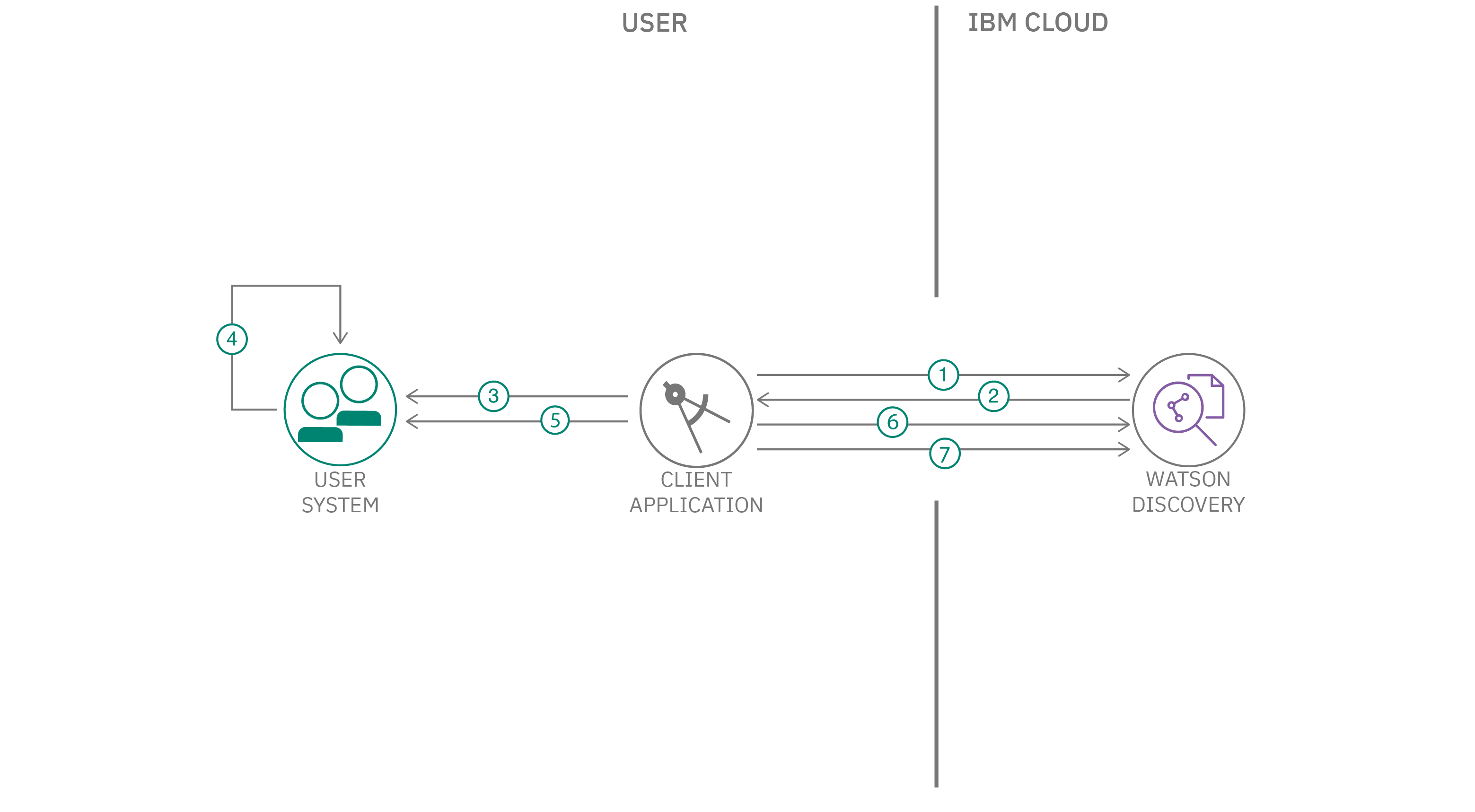 - The client application invokes APIs to update Watson Discovery collection training using updated relevancy scores.