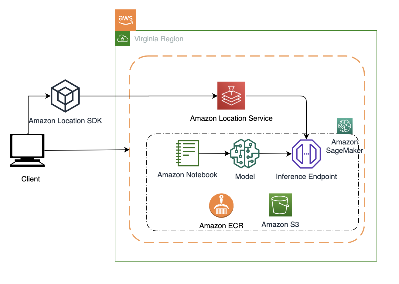In this solution, we focus use SageMaker training jobs to train the cluster model and a SageMaker endpoint to deploy the model. We use an Amazon Location Service display map and cluster result.