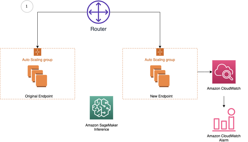 Invocation5XXErrors(caused by the endpoint failing to return a valid result) andModelLatency, which measure how long the model takes to return a response. You can consider other built-in metrics in some cases, likeOverheadLatency, which accounts for other causes of latency, such as unusually large response payloads. You can also have your inference code record custom metrics, and you can configure the alarm measurement evaluation interval. For more information about available metrics, see SageMaker Endpoint Invocation Metrics. - Pick the most suitable traffic shifting policy – The all-at-once policy is a good choice if you just want to make sure that the new endpoint variant is healthy and able to serve traffic. The canary policy is useful if you want to avoid affecting too much traffic if the new endpoint variant has a problem, or if you want to evaluate a custom metric on a small percentage of traffic before shifting over. For example, perhaps you want to emit a custom metric that checks for inference response distribution, and make sure it falls within expected ranges. The linear policy is a more conservative and more complex take on the canary pattern.