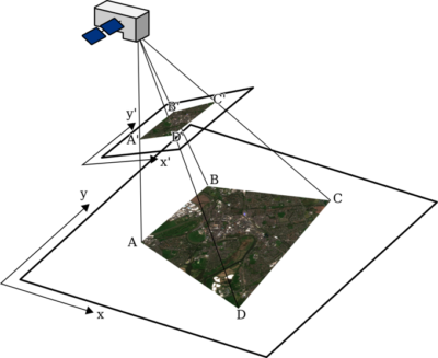 Due to the earth’s curvature, the perspective of satellite images is distorted. This distortion needs to be mathematically corrected and overlaid with location data, using a process called rubbersheeting, for precise geolocation.