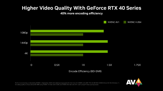 NVIDIA has collaborated with OBS Studio to add AV1 support to its next software release, expected later this month. In addition, Discord is enabling AV1 end to end for the first time later this year. GeForce RTX 40 Series owners will be able to stream with crisp, clear image quality at 1440p and even 4K resolution at 60 frames per second.