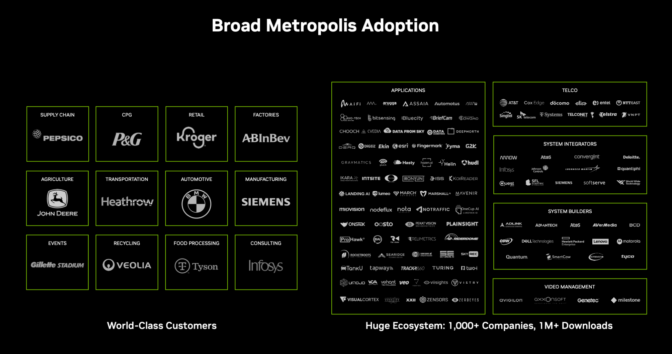 More than 1,000 companies are using NVIDIA Metropolis developer tools to solve Internet of Things (IoT), sensor processing and operational challenges with vision AI — and the rate of adoption is quickening. The tools have now been downloaded over 1 million times by those looking to build vision AI applications.