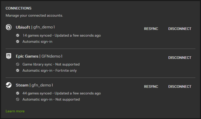 Get into your favorite games faster by linking GeForce NOW to Steam, Epic Games Store and Ubisoft accounts.