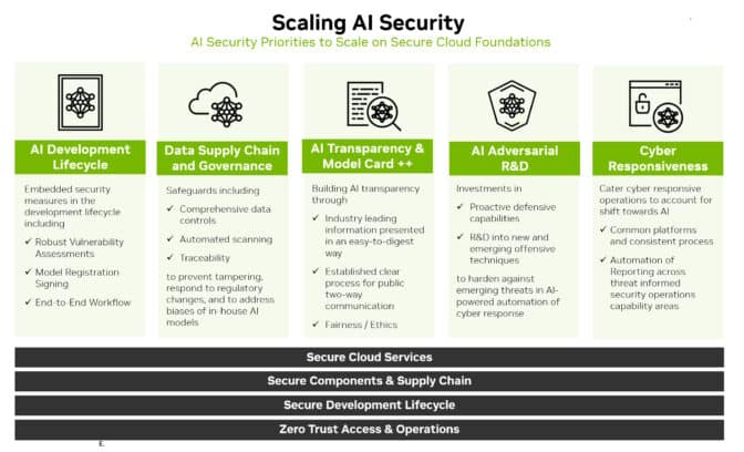 For example, NVIDIA released product security policies that encompass its AI portfolio. Several organizations — including the Open Worldwide Application Security Project — have released AI-tailored implementations of key security elements such as the common vulnerability enumeration method used to identify traditional IT threats.
