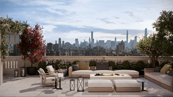 Osinski’s panoramic view from the 20th floor terrace in the Upper East Side