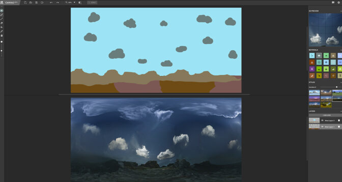Blendeered generated a full, spherical, high-dynamic-range imaging (HDRi) backdrop for his computer-generated imagery workflows — based on AI rendering — with a few simple sketches. He then exported it as an HDR file and imported it into Blender. YouTuber Timo Helmers demonstrates this type of workflow in the video tutorial below.